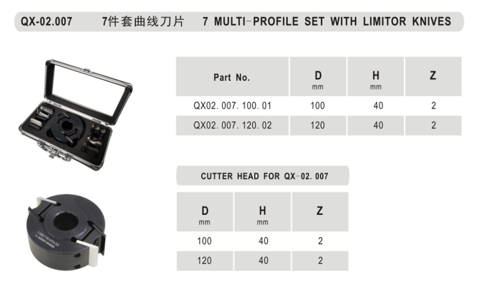 QX-02.007 7件套曲线刀片(正副) 7 Multi - Profile Set With Limitor Knives