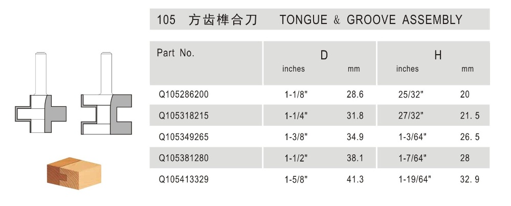 105 方齿榫合刀 Tongue & Groove Assembly