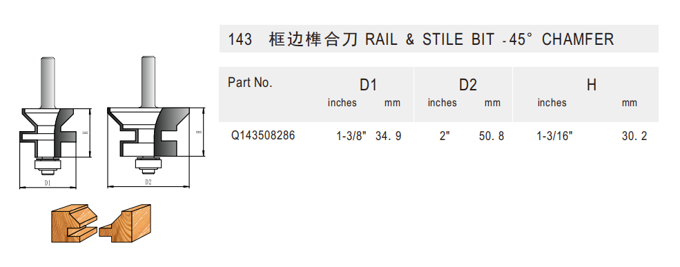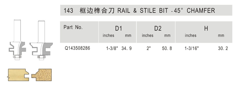 143 框边榫合刀 Rail & Stile Set - Chamfer
