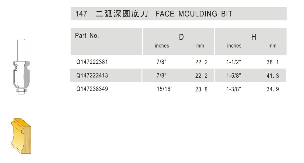 147 二弧深圆底刀 Face Moulding Bit