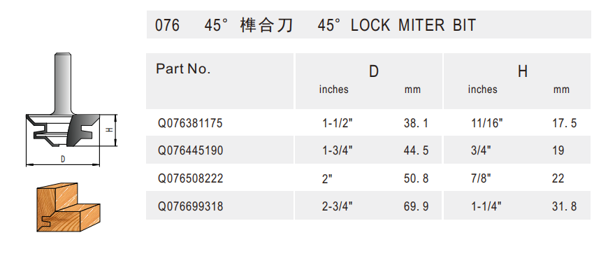076 45°榫合刀 45°Lock Miter Bit